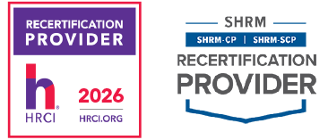 This program has been submitted for 6 general credits hours toward PHR, SPHR and GPHR recertification through the HR Certification Institute (HRCI) as well as 6 recertification credit hours (PDC) toward SHRM-CP and SHRM-SCP through the Society of Human Resource Management (SHRM). The use of these seals is not an endorsement by HRCI or SHRM for the quality of the program. It means that this program has met the HRCI's and SHRM's criteria to be pre-approved for recertification credit.